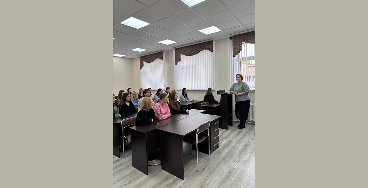 Информационный час «Народная пятилетка. Создаем будущее вместе!» состоялся на историко-филологическом факультете. Среди присутствующих — студенты 2 и 3 курса специальности «Филологическое образование (Русский язык и литература)», студенты 2 курса специальности «Филологическое образование (Белорусский язык и литература)», студенты 3 курса специальности «Журналистика», кураторы учебных групп.