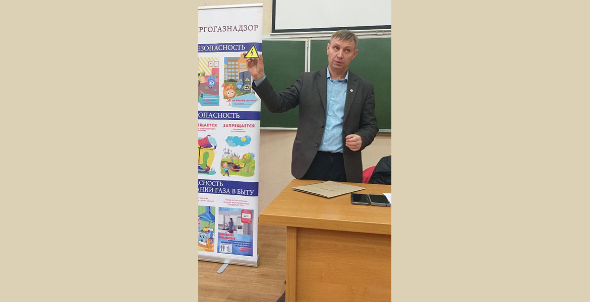 19 ноября 2025 года состоялась профилактическая встреча начальника электротехнической группы филиала государственного учреждения «Государственный энергетический и газовый надзор» по Могилевской области Е. А. Веремьевым со студентами первого курса факультета математики и естествознания и историко-филологического факультета.