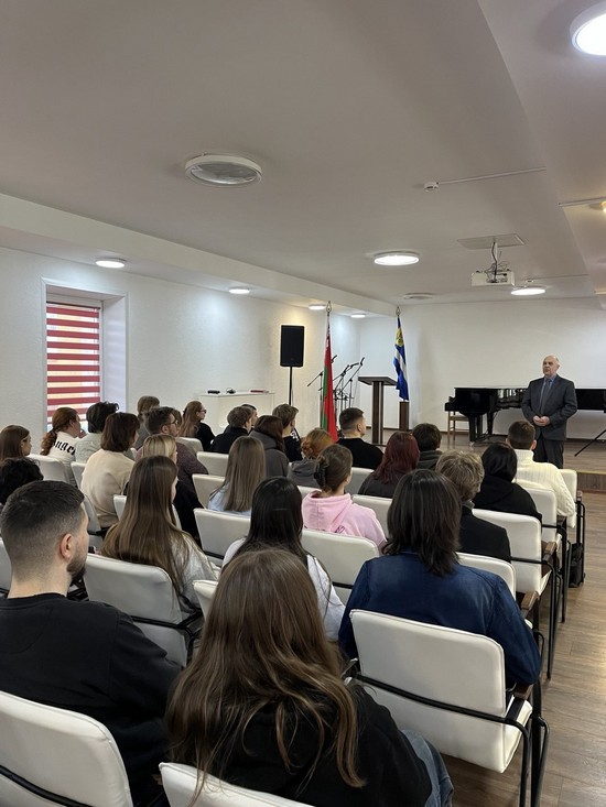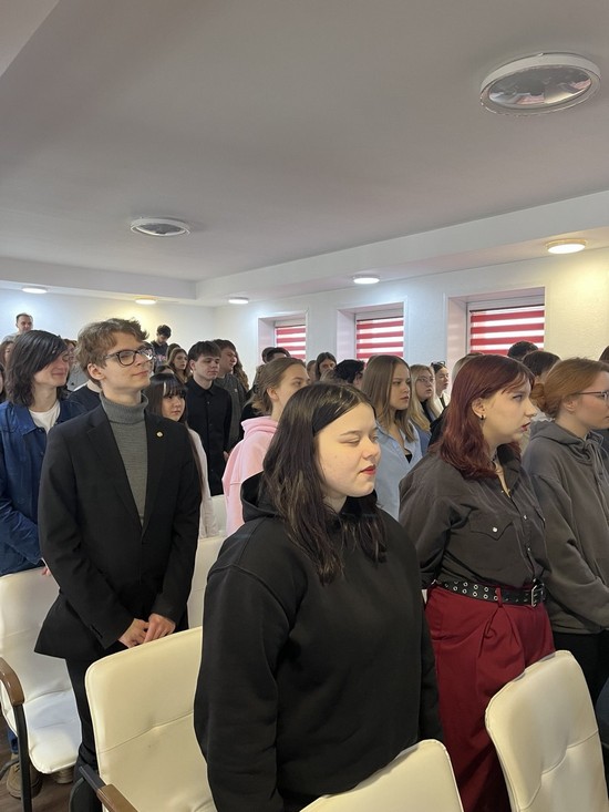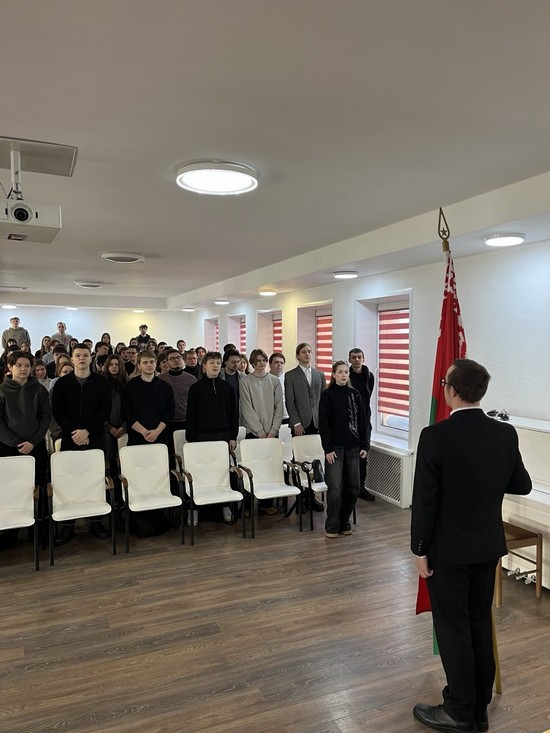 Торжественное закрытие первого семестра 2025/2026 учебного года состоялось на историко-филологическом факультете 23 января. Мероприятие началось с выноса Государственного флага Республики Беларусь и исполнения Государственного гимна Республики Беларусь. Декан факультета В. Н. Бураков поздравил студентов с окончанием учебного семестра, подвел итоги зимней экзаменационной сессии и пожелал дальнейшей плодотворной учебы, творческих успехов.