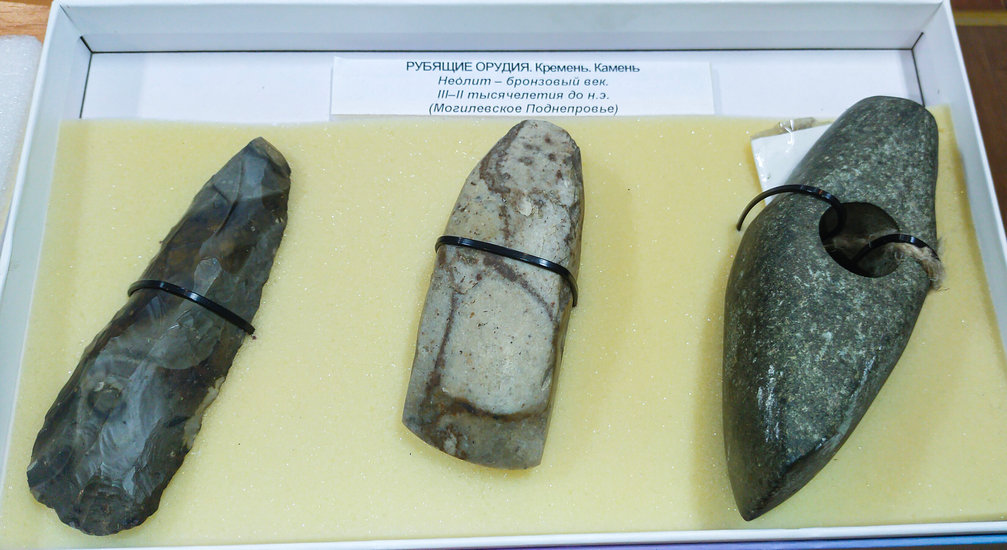 Археологическая тематика свое отражение нашла в еще одной выставке, открытой при Центре первобытной археологии. Руководителем центра А. В. Колосовым были презентованы материалы по каменному и бронзовому векам Могилевского Поднепровья, полученные в результате экспедиционных работ последних лет.