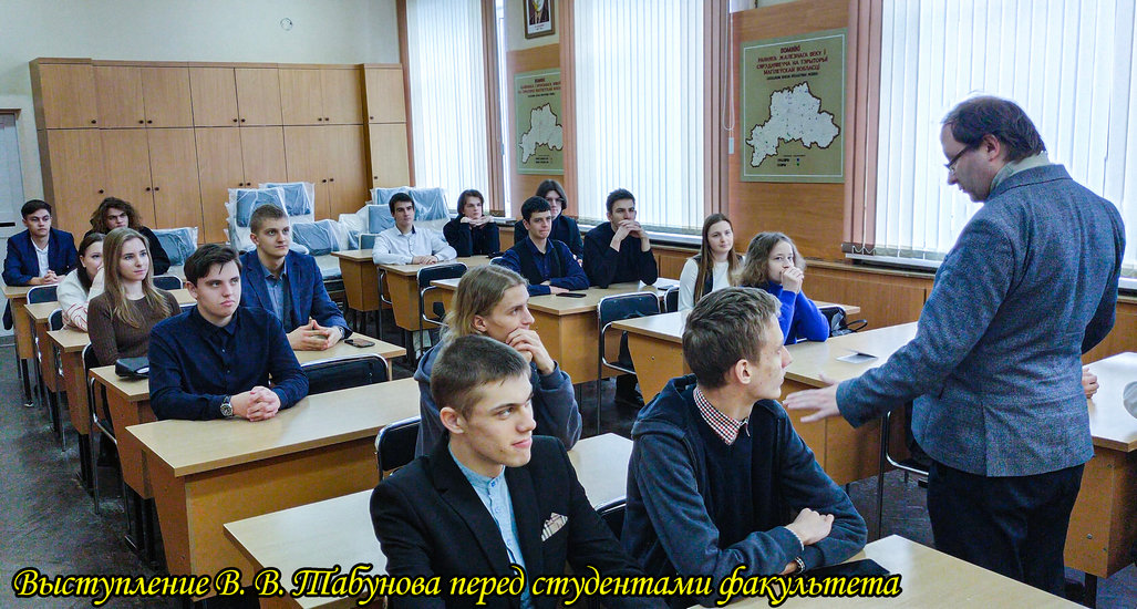 Завершающим аккордом мероприятий на факультете стала лекция для студентов, организованная кафедрой археологии, истории Беларуси и специальных исторических дисциплин. В качестве лектора выступил заведующий кафедры В. В. Табунов. Он ознакомил присутствующих с основными этапами развития государственности на белорусских землях, проблемами историографии по данному вопросу.