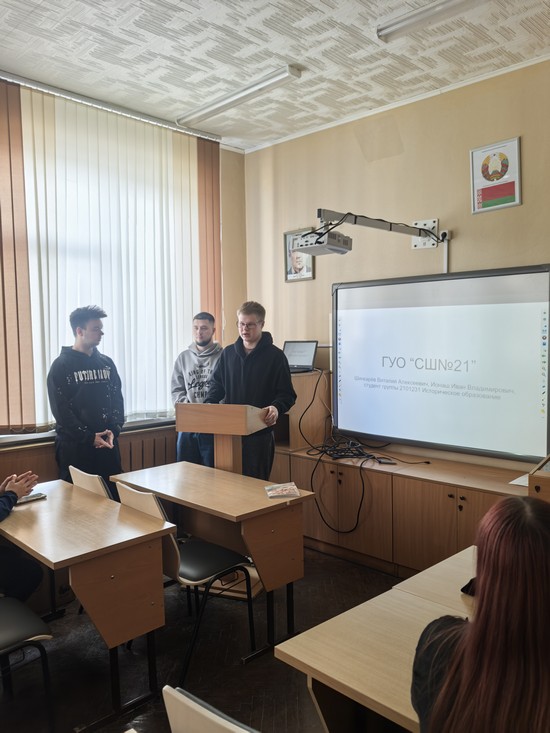 С 16 февраля по 15 марта 2026 года 21 студент группы 2101231 специальности 6-05-0113-01 «Историческое образование» проходили практику в общеобразовательных школах под руководством опытных наставников‑методистов в школах, а также методистов от кафедр факультета.