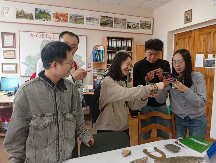 7 апреля 2026 г. гостями кафедры археологии, истории Беларуси и специальных исторических наук стали магистранты факультета экономики и права из Китая. Обучающиеся погрузились в удивительный мир археологии! Для них прошёл мастер‑класс на английском языке по прорисовке и лепке археологических материалов, подготовленный доцентами кафедры Н. П. Шутковой и И. В. Терентьевым.